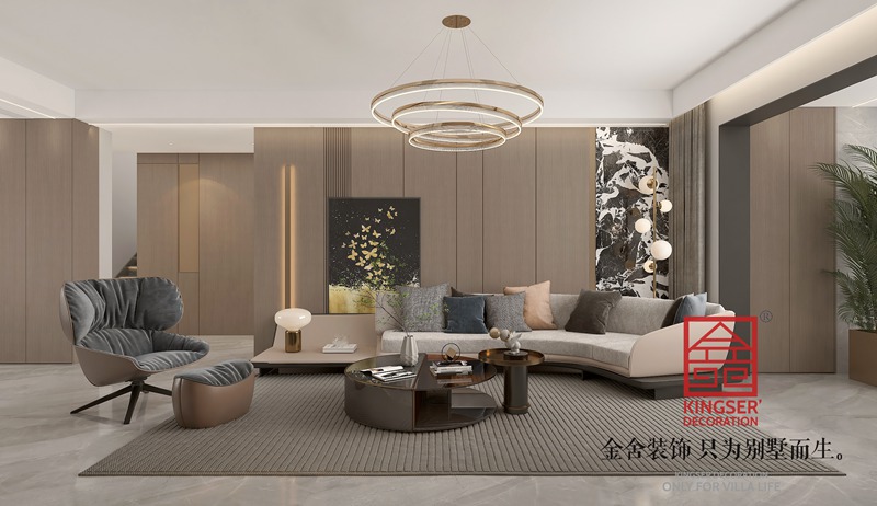 衡水漢王府別墅裝修現(xiàn)代法奢風(fēng)格客廳效果圖