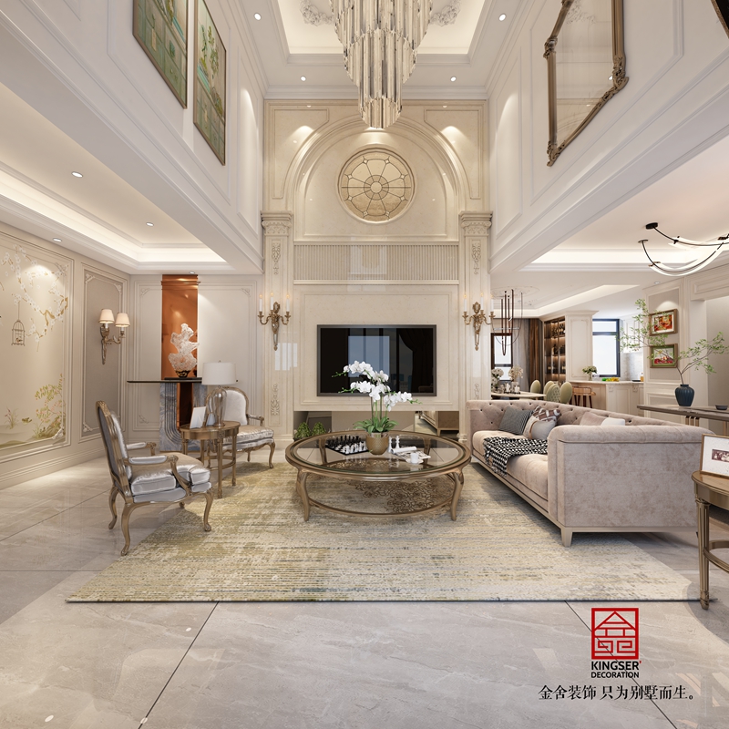 西山林語(yǔ)下疊裝修260平米美式輕奢風(fēng)格效果圖
