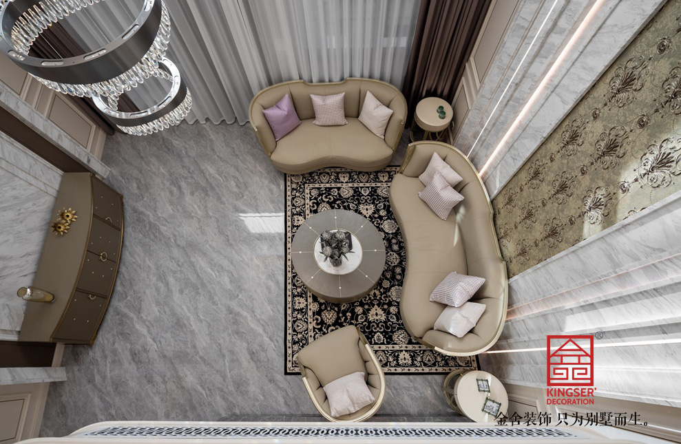玫瑰灣香頌小區(qū)380㎡輕奢美式躍層實景