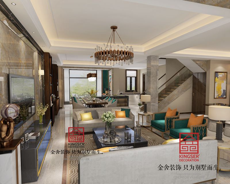 碧桂園267㎡港式輕奢風(fēng)格客廳裝修設(shè)計(jì)