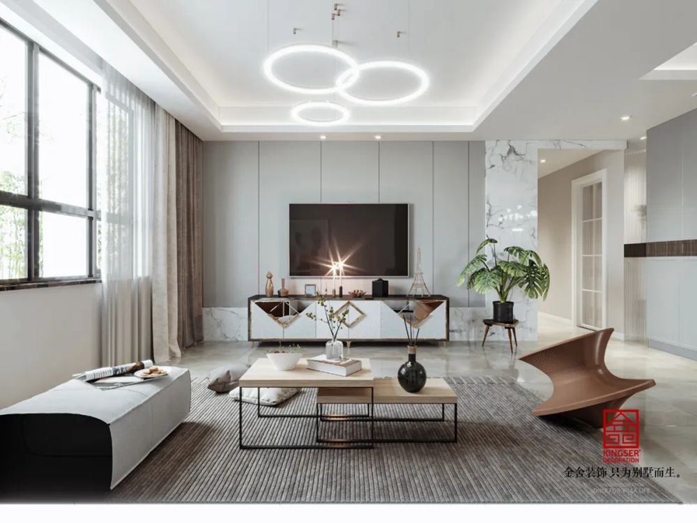 石家莊金舍裝飾-融創(chuàng)中心137平米輕奢風(fēng)格裝修案例賞析。生活原本就該屬于寧?kù)o,當(dāng)我們置身于繁華都市太久,自然會(huì)想要抽身剝離,去追尋內(nèi)心的閑適與平和。一個(gè)優(yōu)雅舒適的家,除了擁有優(yōu)質(zhì)的地理位置與人性化的社區(qū)管理以外,還需要精致的軟裝設(shè)計(jì)來(lái)裝點(diǎn)生活。輕奢是一種高格調(diào)的生活態(tài)度,正是年輕人所需要的生活品質(zhì),輕奢生活,精致到老,對(duì)于現(xiàn)代人,尤其是當(dāng)下的年輕人們而言,切實(shí)給了人們心靈的觸動(dòng)。