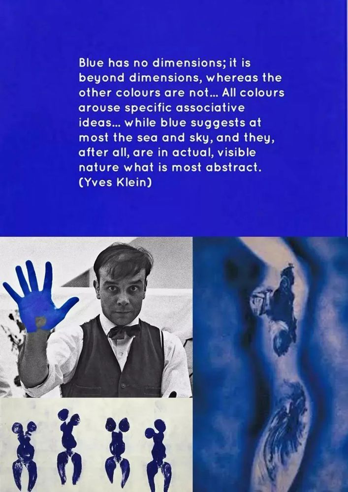 克萊因藍強烈的沖擊力和明凈空曠的視覺系統(tǒng)讓人迷失其中,這個從誕生之日就與藝術(shù)、時尚息息相關(guān)的顏色,從克萊因開始被用在一系列單色題材的藝術(shù)品和時裝、和家裝之中。