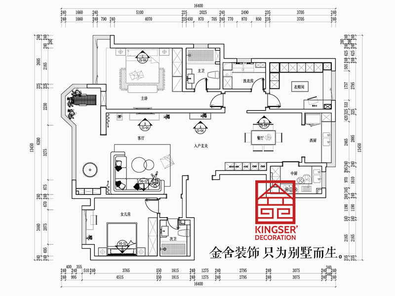 1.應(yīng)業(yè)主要求去掉了衣帽間,使客廳以及餐廳最大限度的利用了空間,整體看上去更加通透舒適。
