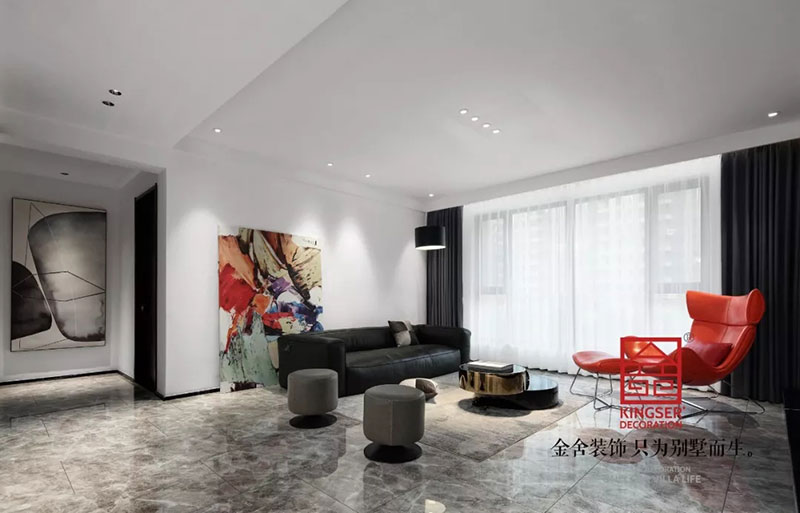 藝術(shù)是多層次的,同樣對于本案來說也是一樣。風格多角度,既有對于色彩的感知與暢想又有黑白灰存在的百搭色調(diào),藝術(shù)的色彩不是單調(diào)的,同樣家居也是一樣。一點罌粟紅,一筆寶石蘭,濃重但是純凈,將冷靜的空間效果煥發(fā)出一種沉溺藝術(shù)殿堂的興奮感覺。