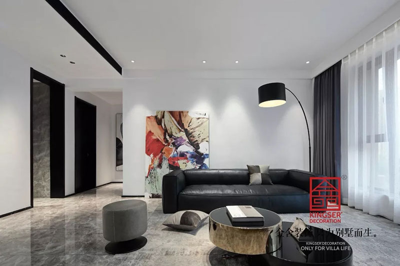 石家莊金舍裝飾-天山九峯175平米極簡風格裝修實景圖。極簡風格的美麗不光是一種快節(jié)奏生活中的剪影,也是一種特立獨行的生活方式,對于極簡人來說優(yōu)雅也是一種生活態(tài)度。同樣對于推崇極簡風,推崇工業(yè)風的人來說,極簡風格就是一個極致的風向標。