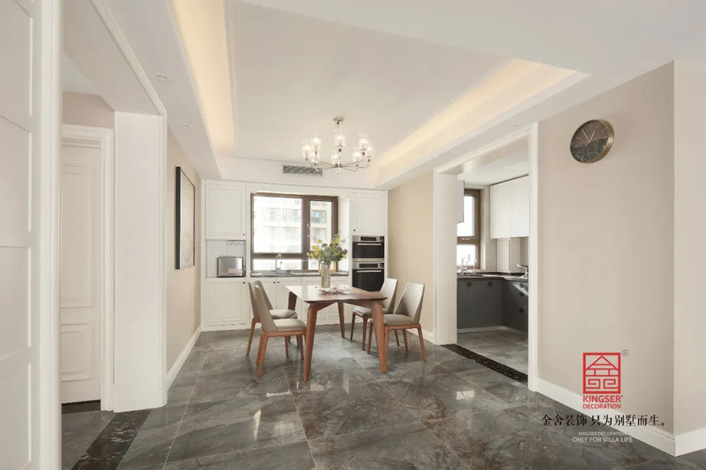 此案例為石家莊金舍裝飾-奧北公元165平米輕奢風(fēng)格裝修實景圖。生活的紛擾,工作的繁雜,多少人在渴望去尋找片刻的清凈時光?!篙p奢風(fēng)格」,恰好迎合了這個時代人們的需求,刪繁就簡的期許,留一片純凈、清靜、自然的空間,一片讓人們沉醉的自我世界。