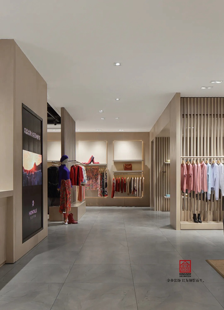 在該案的設(shè)計(jì)上設(shè)計(jì)師深諳整體與局部,線條與燈光,色彩與配飾之間的關(guān)系,把握整體而不忽視局部,突出線條而不削弱燈光,彰顯原木色彩而不漏掉配飾,匠心獨(dú)運(yùn)打造出一個(gè)讓人心馳神往的購物天堂