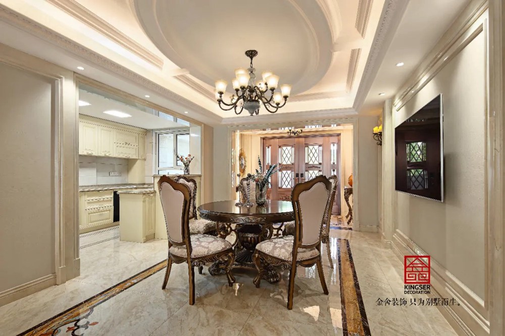 此案例為石家莊金舍裝飾-御河上院220平米歐式風(fēng)格裝修實(shí)景。對于歐式的風(fēng)格來說,元素的運(yùn)用大部分出自于之前的宮廷,從凡爾賽宮到各種歐倫古堡,近千年來的輝煌締造了不斷衍生的文明和欣欣向榮的文化。