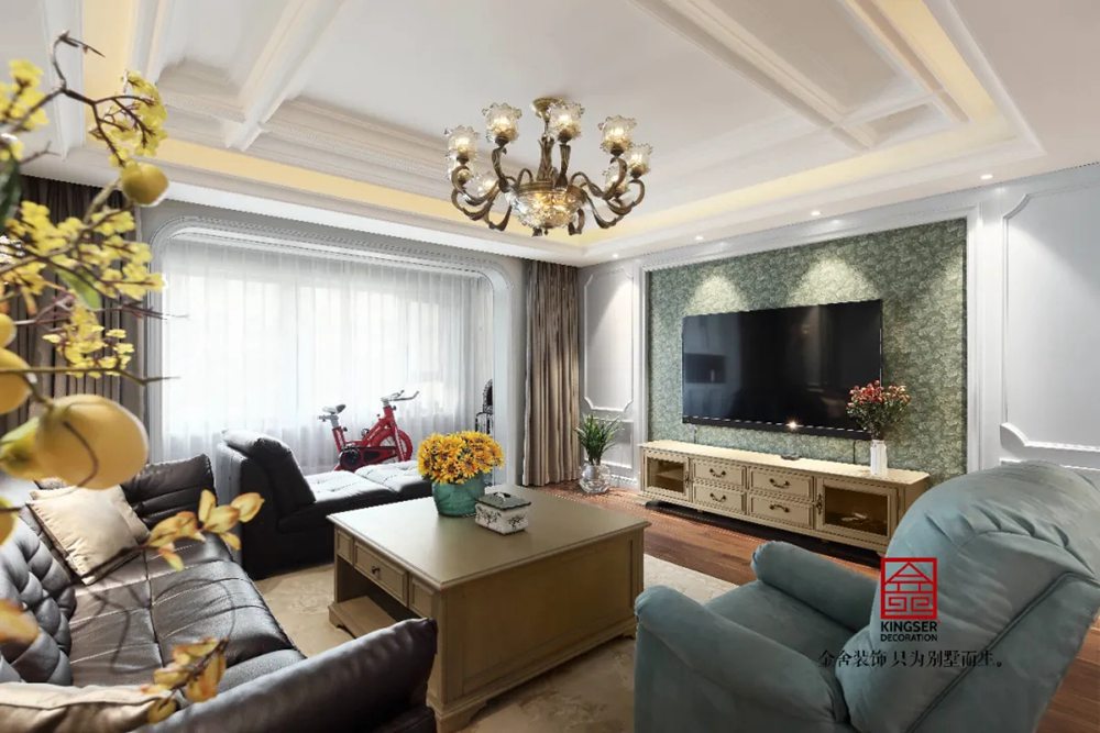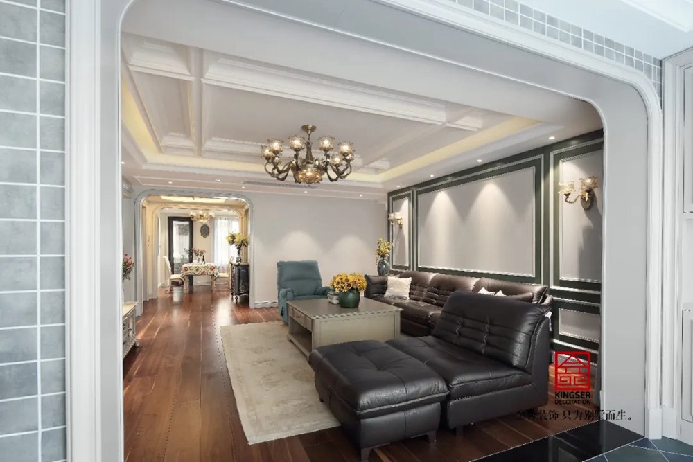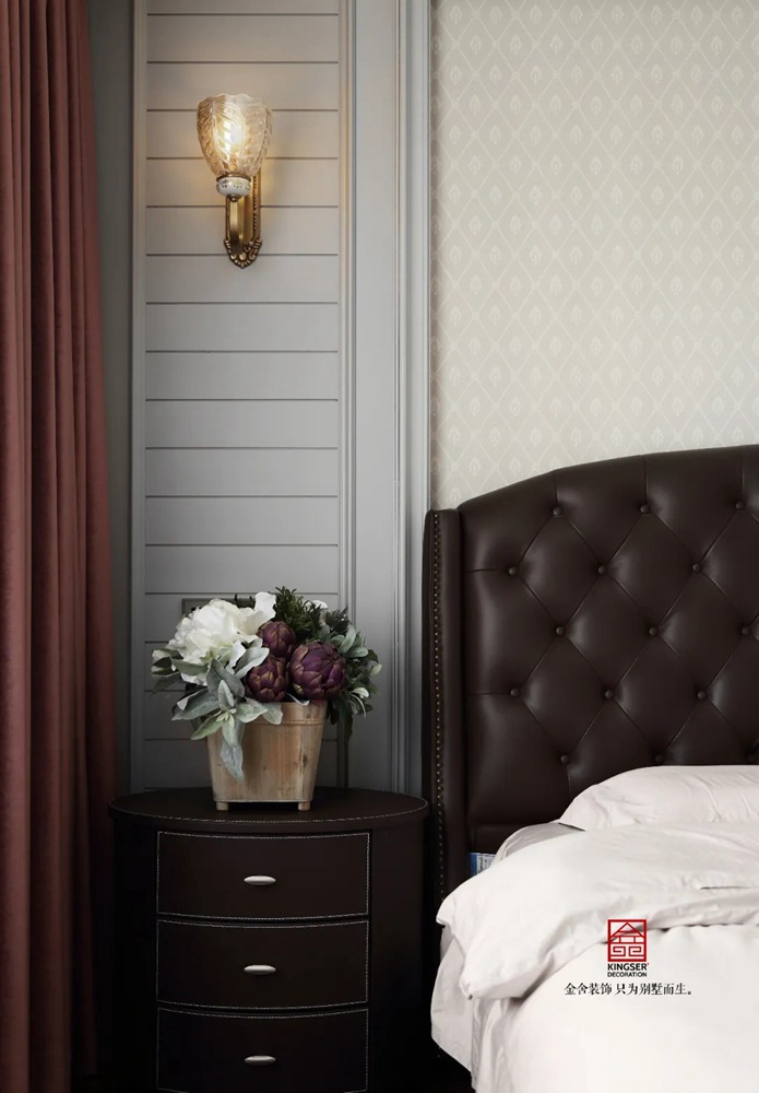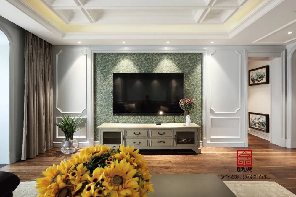 客廳綠色的點綴在靜謐的空間里恰到好處,完美之處在于步入入戶門的這一刻,映入眼簾的皆是經典簡約美式元素,圓潤的造型、浪漫的素色基調、溫暖的木質材料、極具講究的家具和燈飾。這種享受就好像是在回味經典電影中的浪漫情節(jié),灰黃色的記憶,羅曼蒂克的生活。