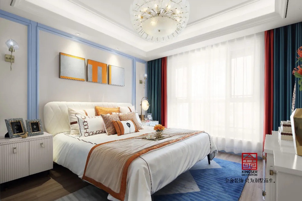 臥室的風(fēng)格,相較于客廳更加的隨意一些,整體色彩與家居的搭配,加上清新曼妙的窗簾,很好的過度了整體色彩。
