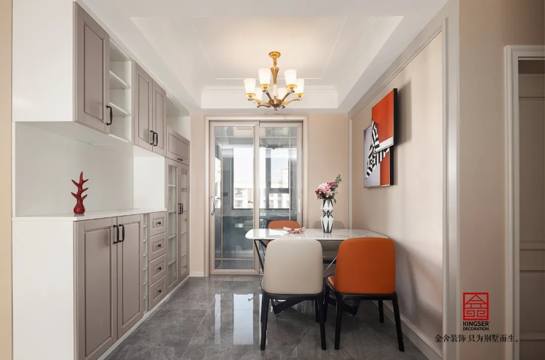 此案例為石家莊金舍裝飾-維多利亞三期120平米美式裝修實景。凡是設(shè)計,皆涉及色彩,或許濃烈而充滿激情,或許素淡而沉靜自若,陸離斑駁間,演繹出城市的性格。色彩里所蘊藏的豐富想象力,則渲染著家居生活的底色。
