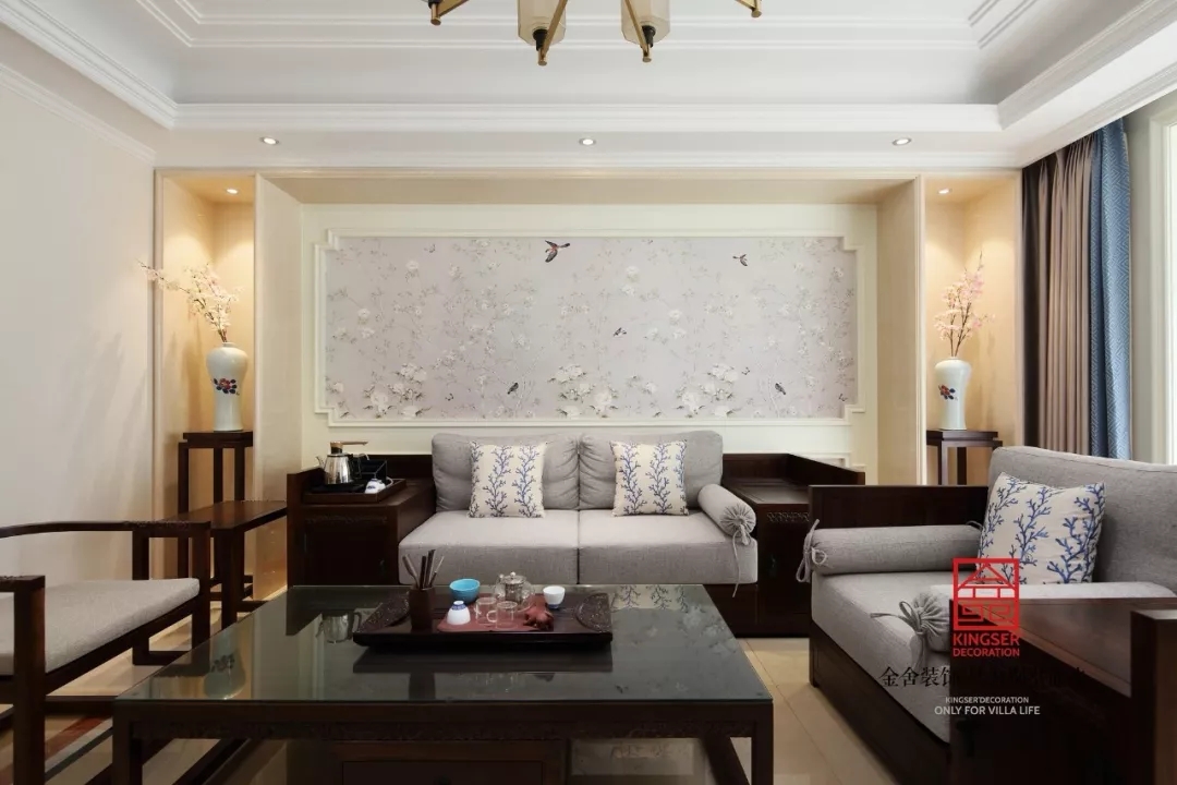 空間里把中西方兩種風格交織融合,碰撞出完美的繪卷,讓你有一種在時光下舒緩閑逸;閑暇時泡一壺清茶,執(zhí)一縷墨香,聆聽陌上花開的聲音,溫暖了身心的疲憊。