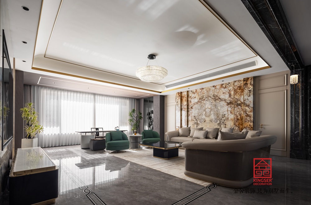 此案例為石家莊金舍裝飾-瀚唐三期159平米簡美風格裝修實景圖。這個項目整體設計使用其最為擅長的簡美融合高級灰的效果,打造優(yōu)雅沉穩(wěn)的奢尚家居體驗,局部使用了金色的金屬質(zhì)感邊條,營造神秘、冷精、恬美的設計氛圍。