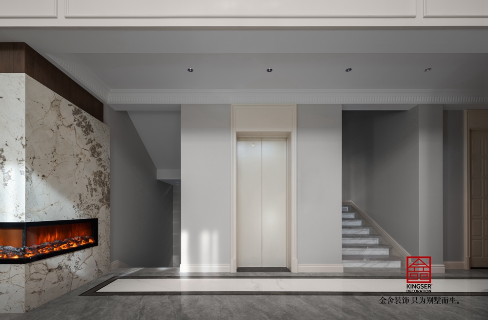 別墅的客廳,無疑是整棟建筑中的璀璨明珠。在挑高六米的宏偉空間中,我們巧妙地布置了一個簡約風格的轉角壁爐區(qū),與素色沙發(fā)相映成趣,營造出一種既現(xiàn)代又舒適的氛圍。