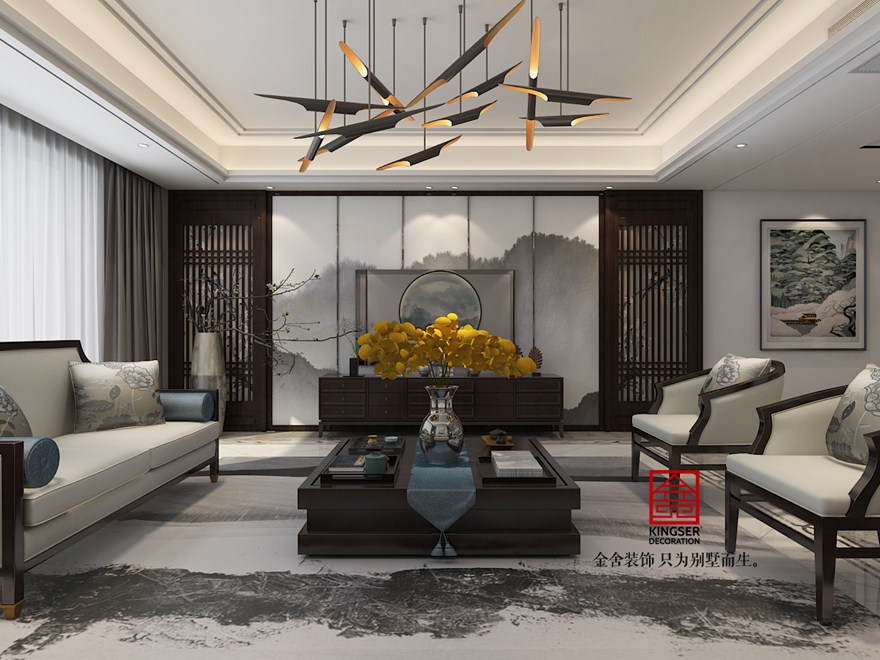 整體的色調(diào)以黑白灰為主,根據(jù)需求從新劃分功能空間,并參考了中式園林里面的造景手法,達(dá)到室內(nèi)空間的“一步一景”
