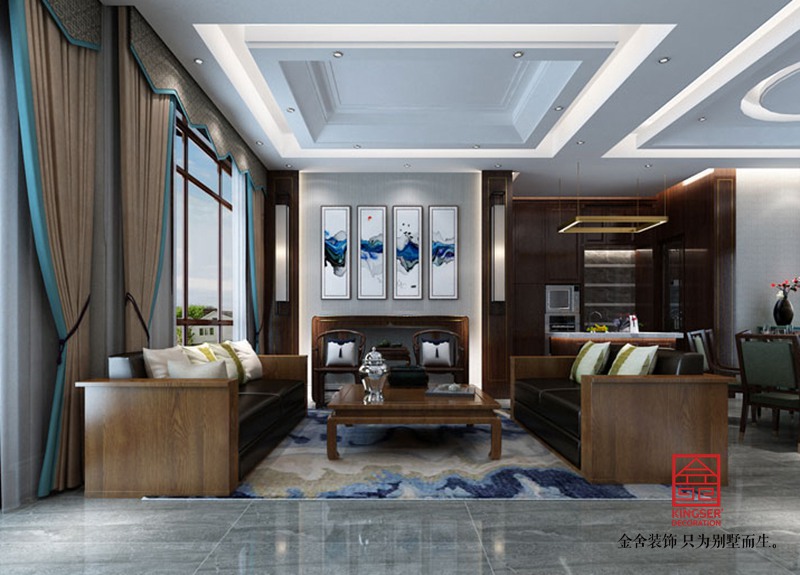 設(shè)計說明:此案例為石家莊金舍裝飾-西山林語303平米中式風(fēng)格裝修效果圖。新中式風(fēng)格將中國傳統(tǒng)文化的元素融入到現(xiàn)代人的生活環(huán)境和審美上的一種新型風(fēng)格,這樣的設(shè)計體現(xiàn)出傳統(tǒng)文化的元素,又能表達(dá)現(xiàn)代人對古典文化的喜愛?,F(xiàn)在越來越多的人開始喜歡這種風(fēng)格的設(shè)計,因為新中式是以現(xiàn)代人的審美需求來打造富有傳統(tǒng)韻味的事物,讓傳統(tǒng)藝術(shù)在當(dāng)今社會上得到合適的體現(xiàn)。開放式的廚房,最大限度提升業(yè)主對生活的熱愛和創(chuàng)想。