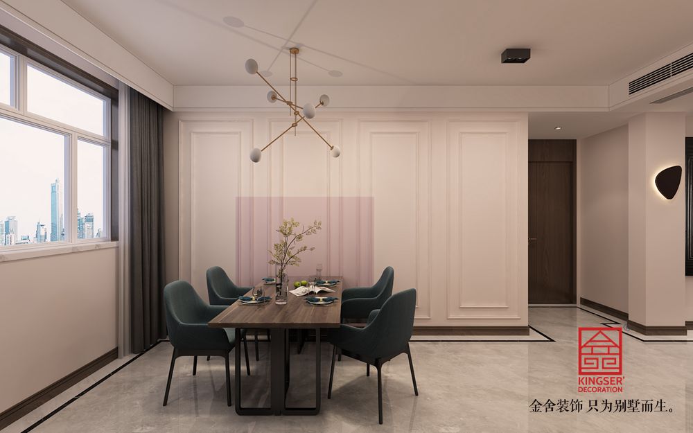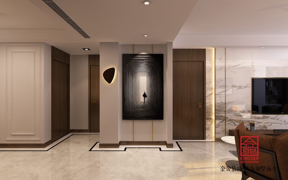 設計說明:此方案為石家莊金舍裝飾-奧北公元134平米現(xiàn)代風格裝修效果圖。業(yè)主為年輕新婚夫婦,對新家有無限的美好憧憬,所以在出設計方案的時候更注重顏色以及燈光的舒適度。沒有做太多復雜的造型,只是用天然石材以及護墻板的木紋紋理來襯托出現(xiàn)在風格的時尚氣息。地面瓷磚的鋪貼方式也沒有采用傳統(tǒng)的分空間區(qū)域的方式來做造型拼花,而是采用了對工人師傅施工工藝要求很高的波導線繞墻鋪貼方式,這樣從視覺感上擴大了整個空間的空間感。這樣也不會限制家具擺放的位置,后期家具進場后可以根據(jù)業(yè)主自己的使用喜歡擺放不同的角度。