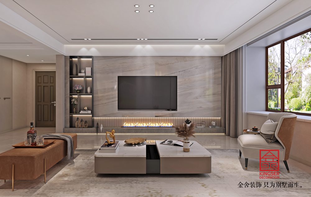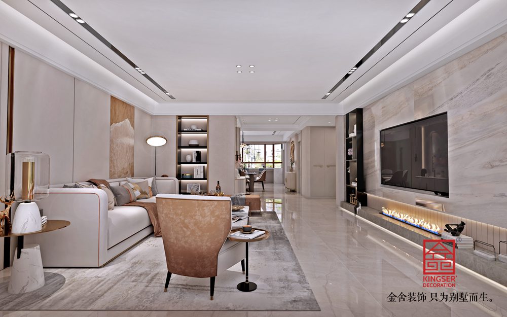 此案例為石家莊金舍裝飾-榮盛華府213平米輕奢風格裝修效果圖。輕奢是一種格調(diào)風尚,是一種極減的風格不是鋪排和堆積,是用極少的物質(zhì)和人力,做出高,大,上的規(guī)格,給人們的視覺上帶來清新,簡潔,高雅,極貴的感受。輕奢是設(shè)計的一種路線和風格,以簡勝繁,以少勝多,達到出奇制勝的效果。