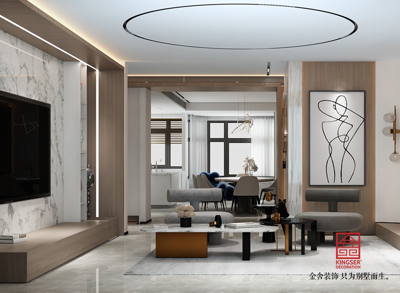 此案例為石家莊金舍裝飾-榮盛華府180平米極簡風格裝修效果圖。極簡主義是生活及藝術(shù)的一種風格,本意在于極力追求簡約,并且拒絕違反這一形態(tài)的任何事物。