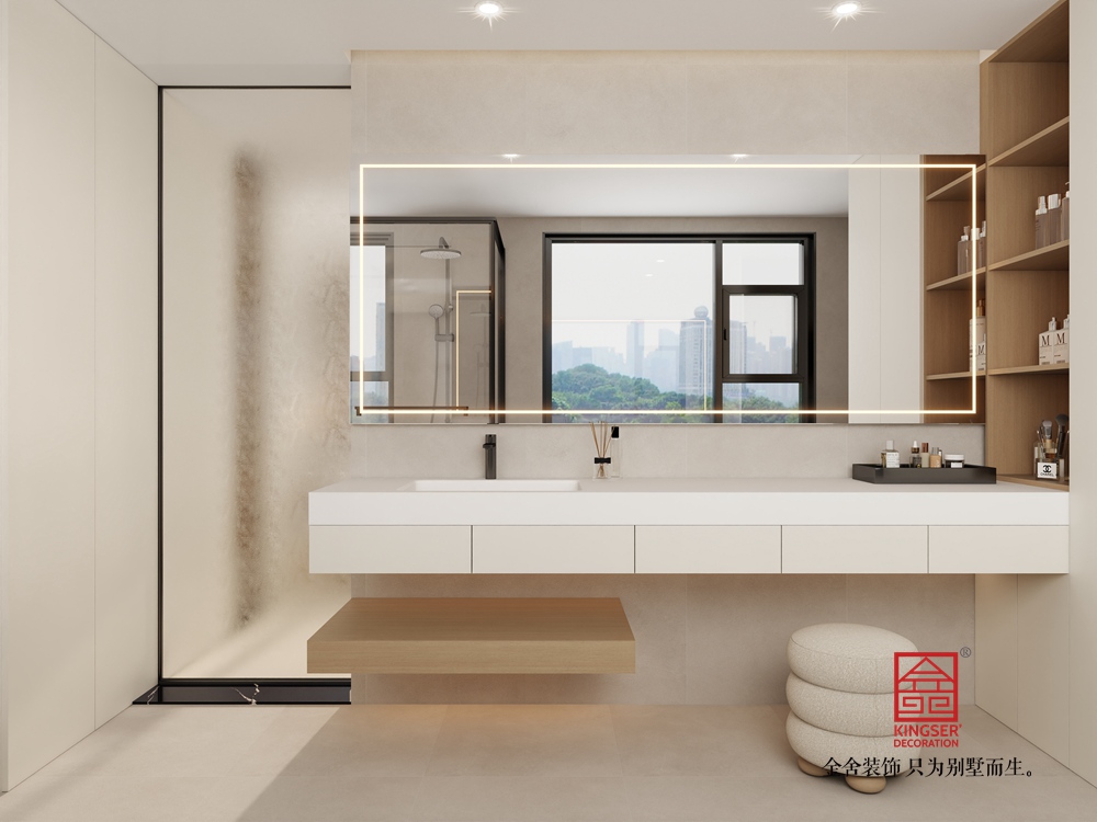 本客廳設(shè)計(jì)聚焦現(xiàn)代輕奢與實(shí)用功能的融合。以簡潔的白色為主調(diào),搭配木質(zhì)元素,營造出溫馨且雅致的氛圍。墻面設(shè)置投影幕布,結(jié)合下方的仿真火焰裝置,打造出兼具觀影與氛圍感營造的核心區(qū)域,滿足休閑娛樂需求。家具選擇上,弧形白色坐凳與造型獨(dú)特的茶幾,為空間注入柔和與精致感。整體布局通透,大窗戶引入充足自然光線,讓空間更顯開闊舒適,是一個(gè)集美觀與實(shí)用為一體的高品質(zhì)起居空間。