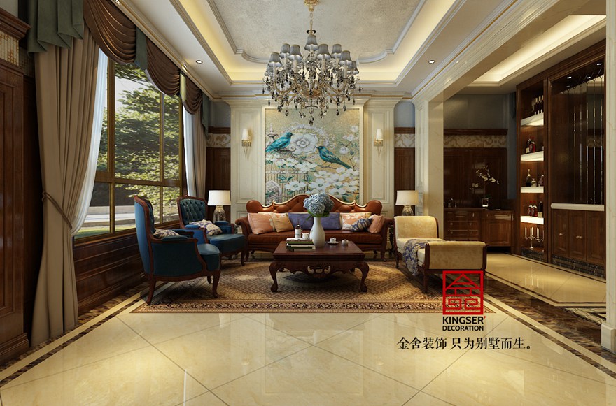 此案例為石家莊金舍裝飾-大者別墅400平米新古典風格裝修效果圖。新古典風格裝修從簡單到繁雜、從整體到局部,精雕細琢,鑲花刻金都給人一絲不茍的印象。一方面保留了材質(zhì)、色彩的大致風格,仍然可以很強烈地感受傳統(tǒng)的歷史痕跡與渾厚的文化底蘊,同時又摒棄了過于復(fù)雜的肌理和裝飾,簡化了線條。