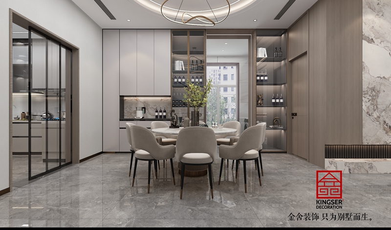 當(dāng)前位置: 首頁(yè) > 裝修案例 > 裝修圖庫(kù) > 金碧天下現(xiàn)代輕奢風(fēng)格別墅裝修餐廳效果圖
