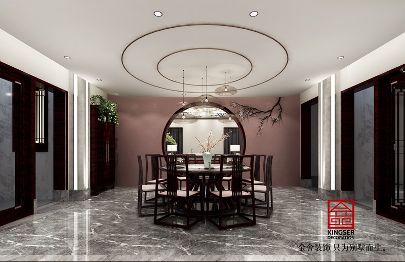 當前位置: 首頁 > 裝修案例 > 裝修圖庫 > 國山雅苑300平新中式別墅裝修餐廳效果圖